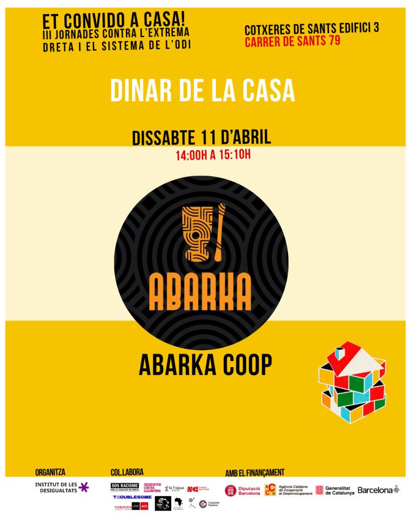 10:30h – 12:30h | Treballem juntes? Teixir xarxes contra l’Odi Creació de xarxa contra l’Odi. Entitats promotores: l’Institut de les Desigualtats, SOS Racisme, Fundación Contexto( Acción Contra el Odio) i La Fragua Project |